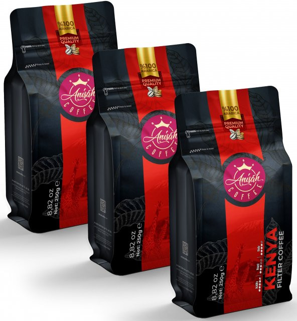 Anisah Coffee Kenya Filtre Kahve 3 x 250 Gram - 3'lü Paket