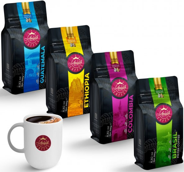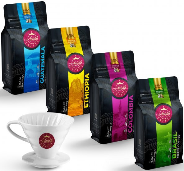 Anisah Coffee Dünya Filtre Kahve Seti 4 x 250 Gram 300 ml Kupa