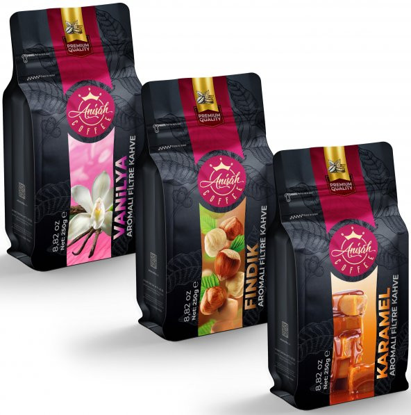 Anisah Coffee Aromalı Filtre Kahve Set 3 x 250 Gram Fındık Vaniya Karamel