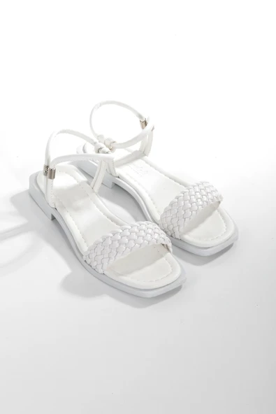 MİA026-1561 Kadın BEYAZ El Örgülü Abiye Günlük-Düğün-Eğlence-Tatil Sandaleti