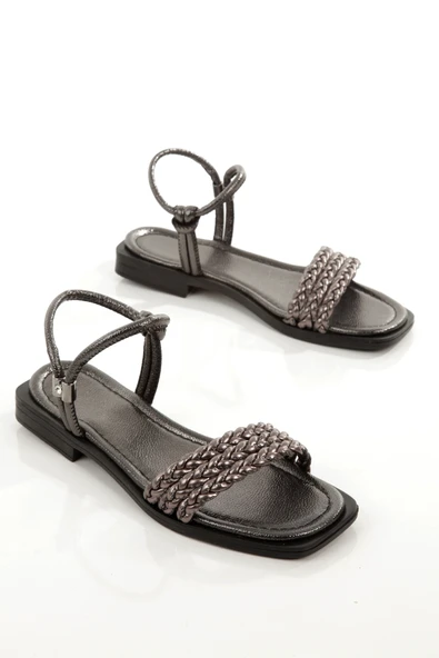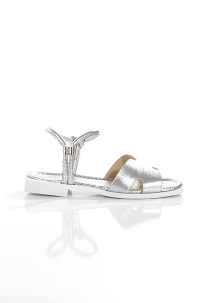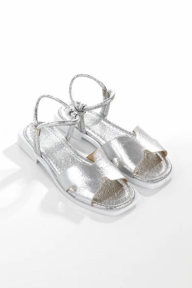 MİA028-3013 Hakiki Deri Kadın Günlük Ortopedik GÜMÜŞ Tatil Sandaleti