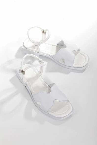 MİA028-3013 Hakiki Deri Kadın Günlük Ortopedik BEYAZ Tatil Sandaleti