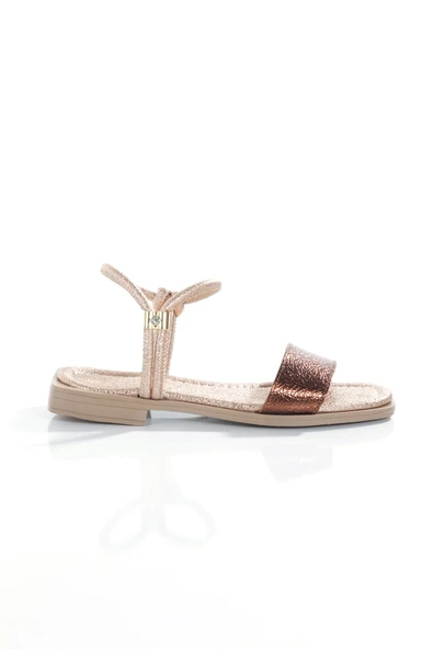 MİA028-3011 Hakiki Deri Kadın Günlük Konforlu BRONZ Tatil Sandalet