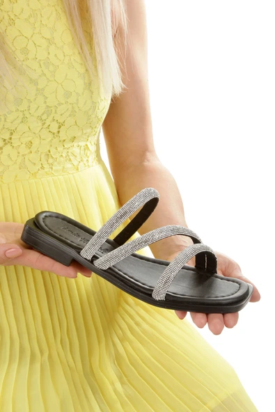 MİA026-1610 Kadın Günlük Taşlı Bantlı SİYAH Tatil Terliği