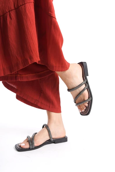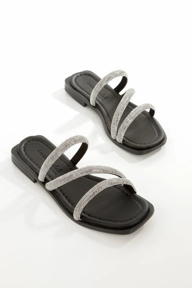 MİA026-1602 Günlük Kadın Taşlı Siyah Tatil Terliği