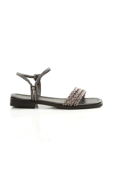 MİA026-1561 Kadın GÜMÜŞ SİYAH El Örgülü Abiye Günlük-Düğün-Eğlence-Tatil Sandaleti