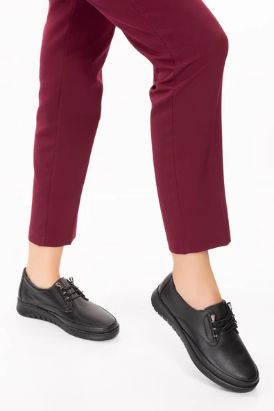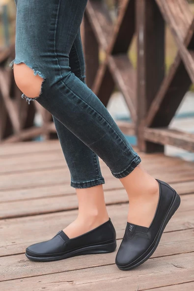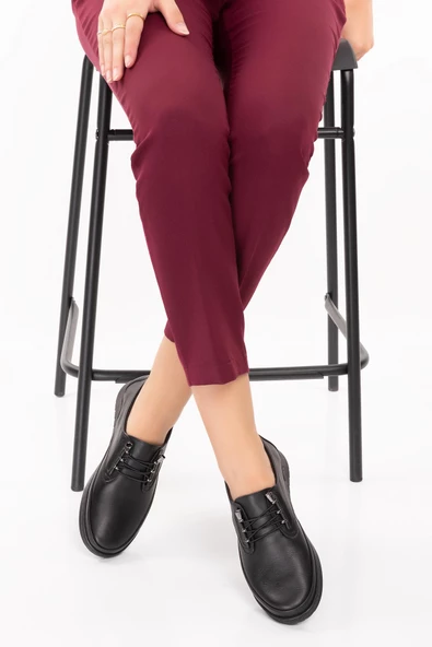 Artı-Artı001-2207 Hakiki Deri Ortopedik Yürüyüş Tabanlı Kadın Siyah Ayakkabı