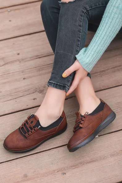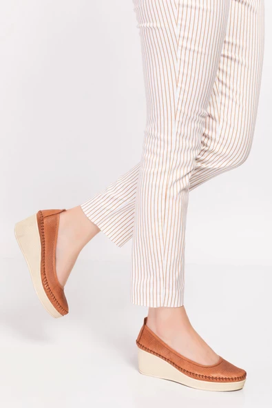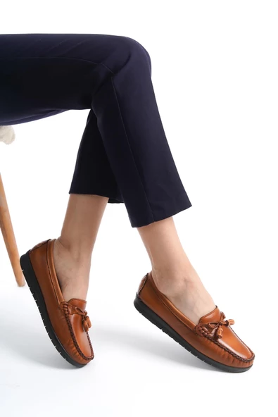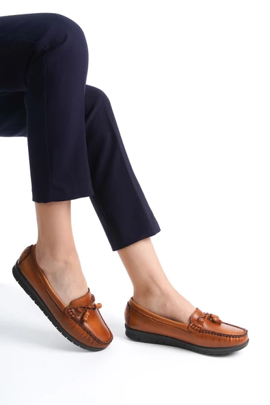 Artı-Artı014-BB-505 Hakiki Deri Ortopedik Kadın Taba Babet Ayakkabı