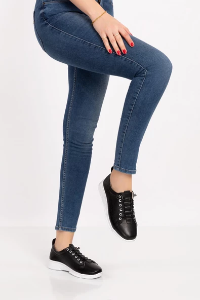 Artı-Artı031-0082 Kadın Hakiki Deri Ortopedik Siyah Sneaker Ayakkabı