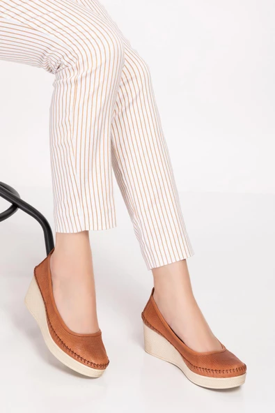 Artı-Artı014-0106-1 Hakiki Deri Kadın Dolgu Topuk Sandalet Ayakkabı
