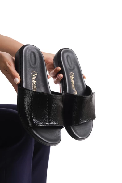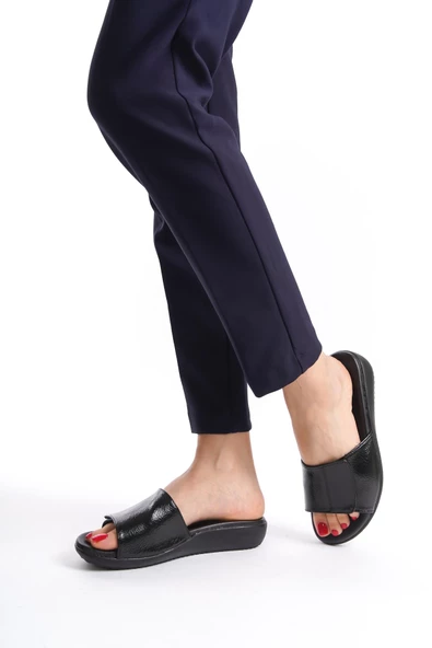 Artı-Artı020-5003 Ortopedik Topuk Dikeni Fonksiyonlu Kadın Siyah Kırışık Rugan Terlik