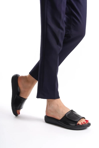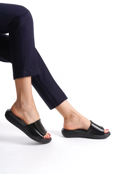 MİA028-3011 Hakiki Deri Kadın Günlük Konforlu SİYAH Tatil Sandalet