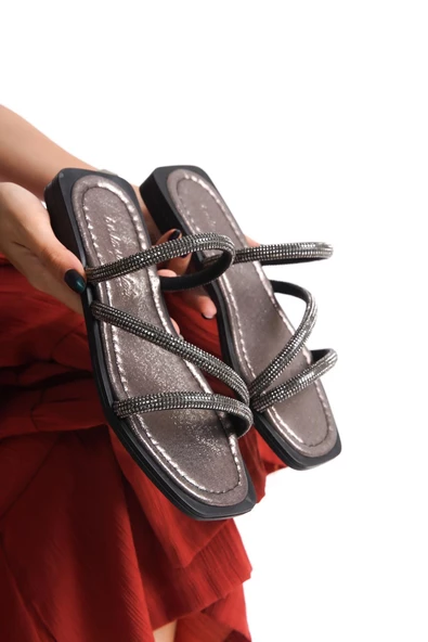 MİA026-1565 Kadın Çoklu Biyeli Abiye Günlük-Düğün-Eğlence-GÜMÜŞ Tatil Terliği