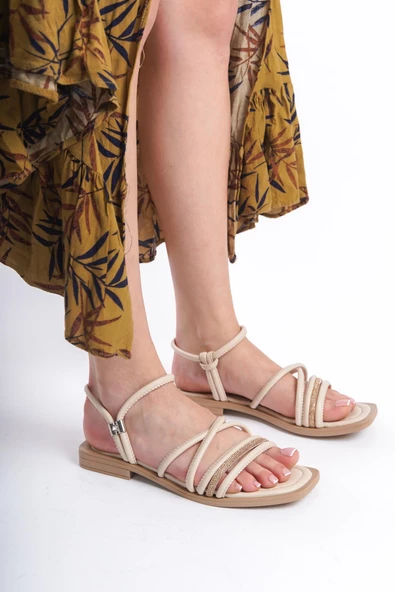 MİA026-1510 Günlük Kadın Bej Tatil Sandaleti