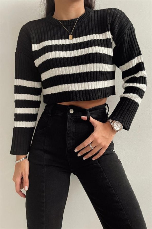 Kadın Bisiklet Yaka Önü Zincirli Crop Bluz