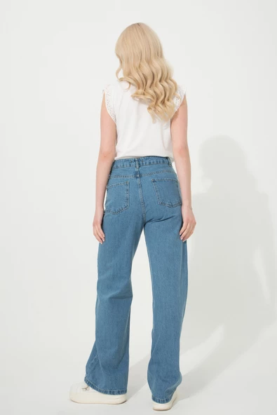 Kadın Açık Mavi Yüksek Bel Geniş Paça Bol, Palazzo
