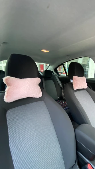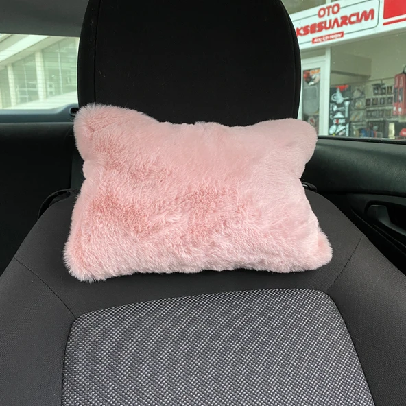 Yumuşak Peluşlu Ortopedik Araba Seyahat Boyun Yastığı 2'li Pudra Pembe