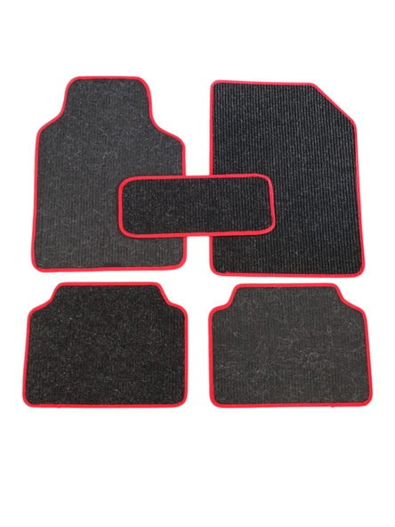 Oto Halı Paspas Hasır Universal 5 Parça Siyah Kırmızı Biyeli