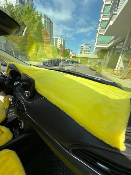 Yumuşak Tüylü Oto Torpido Bagaj Üstü Örtü Peluş Halı Sarı 130x40cm