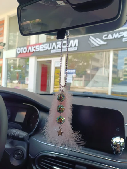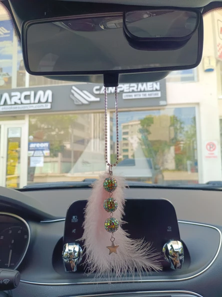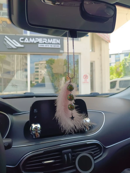 Pandalı Model Metal Yıldız Dikiz Ayna Süsü Şeker Pembe Tüylü