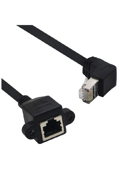 Zilevo Rj45 Dişi Erkek Uzatma 0.5M Dirsek 90 Derece Panel Tipi Cat6 Montaj Kablosu