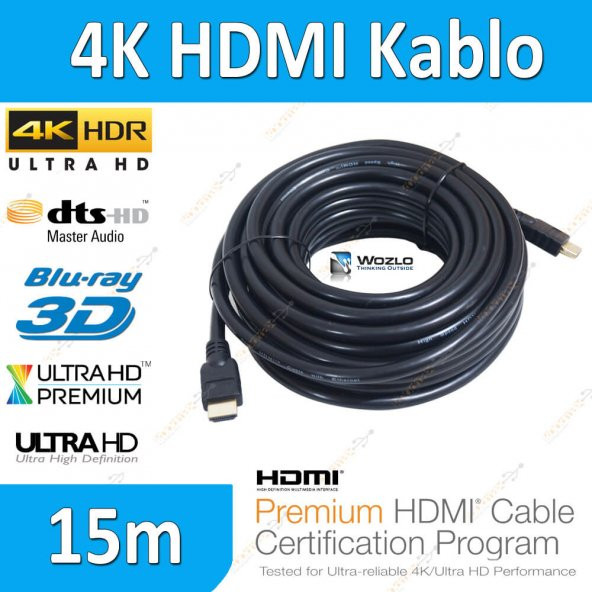 15M Metre 4K Hdmi Kablo Ultra Hd Siyah Altın Uç Receiver Ps3 Ps4