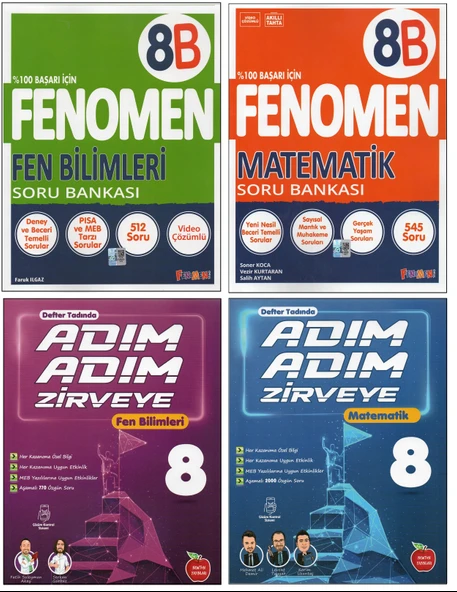 FENOMEN 8. SINIF 8B FEN B.+8B MATEMATİK+NEWTON ADIM ADIM ZİRVEYE FEN B.+MATEMATİK (4 KİTAP)