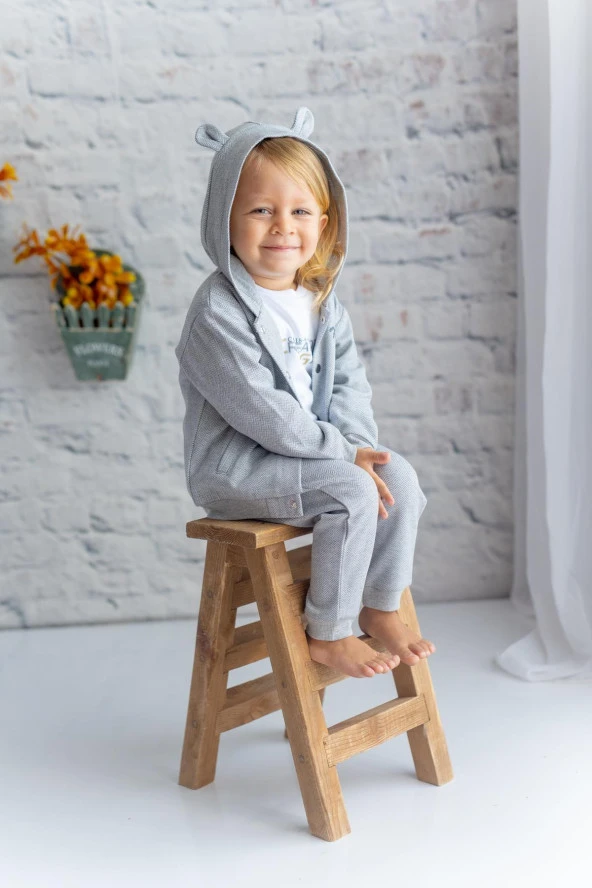 Erkek Bebek Kapüşonlu Hırka ve Pantolon Takım