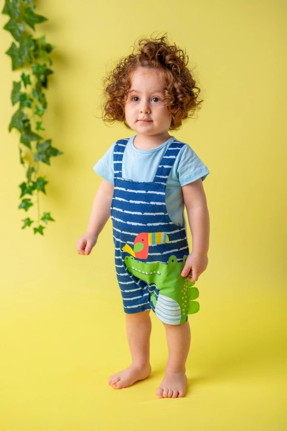 Erkek Bebek Mavi Croc Salopet Tulum (3-18ay)