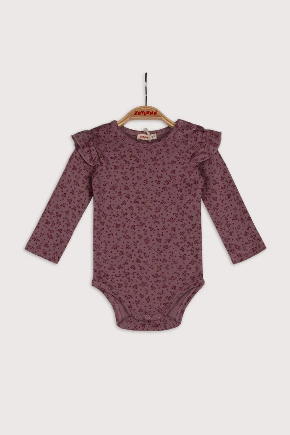 Kız Bebek Çiçek Desenli Omuz Fırfırlı Body (6-24ay)