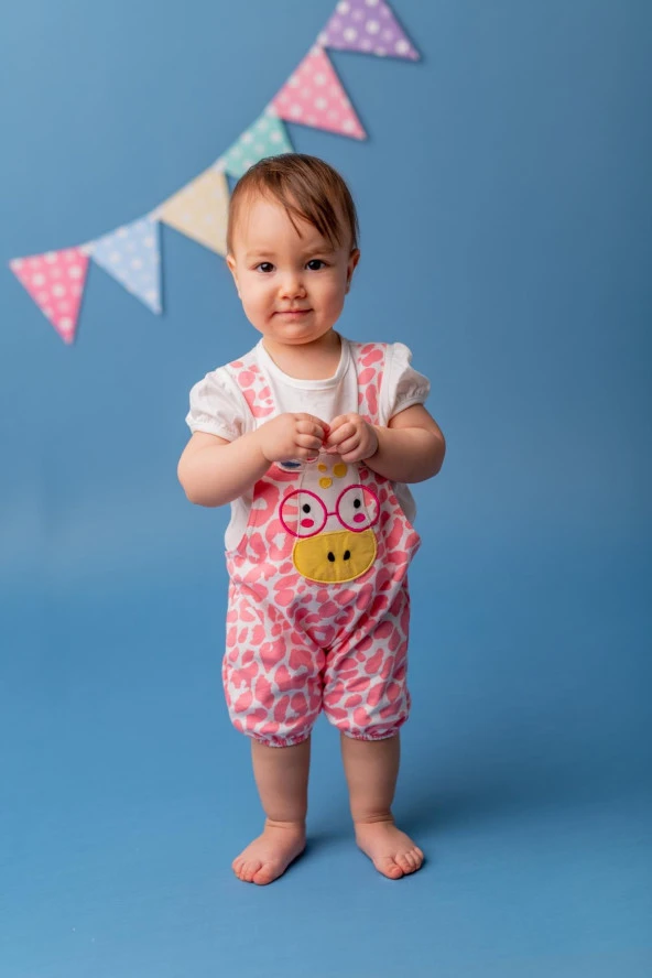 Kız Bebek Beyaz Zürafa Salopet Tulum (0-18ay)