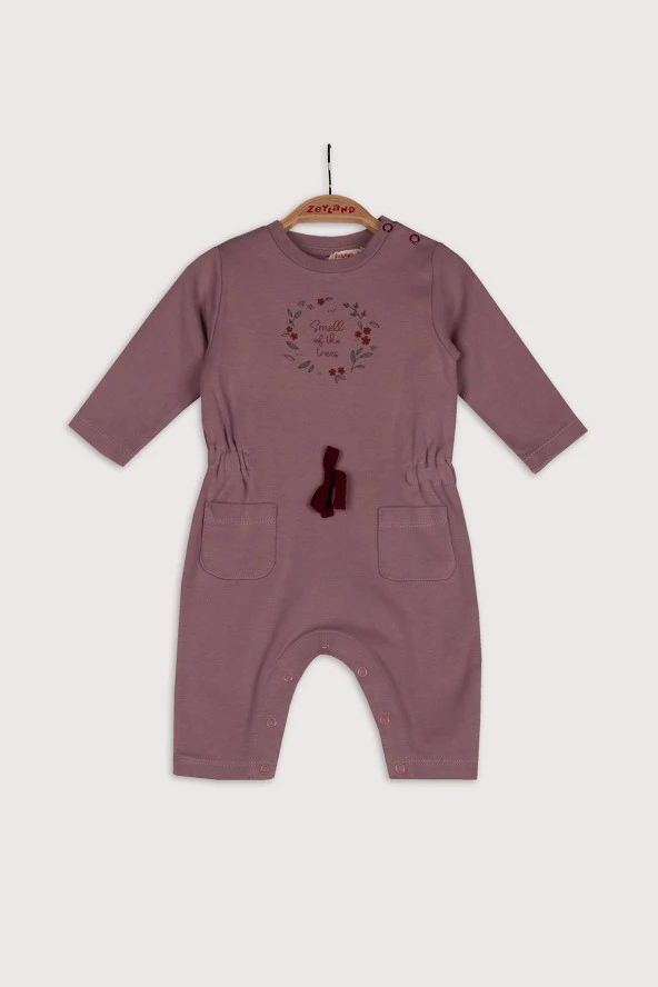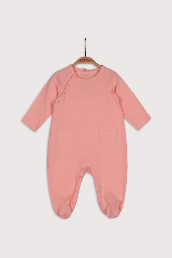 Kız Bebek Çıtçıtlı Cepli %100 Pamuk Tulum (0-12ay)