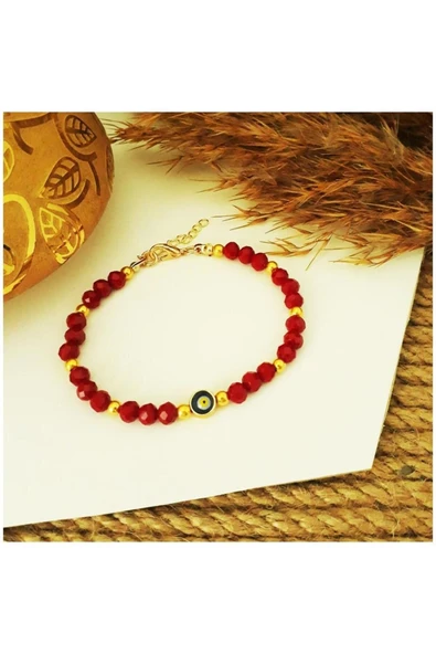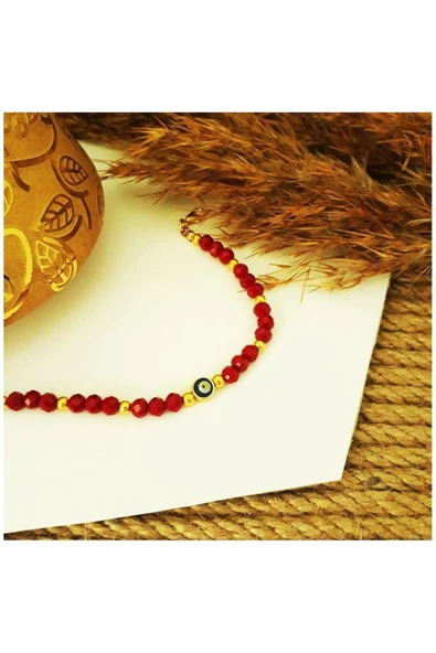 Kırmızı Kristal & Nazar Boncuğu Halhal