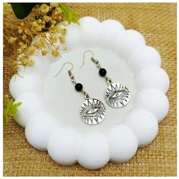 Gümüş Renk Horusun Gözü & Oniks Doğal Taş Kadın Küpe