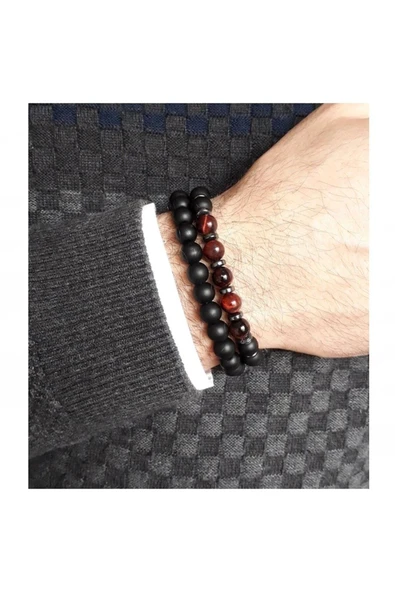Kızıl Kaplangözü - Hematit - Oniks Erkek Doğal Taş Bileklik