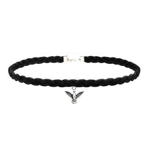 Siyah Süet Saç Örgü Albatros Kuşu Kadın Choker