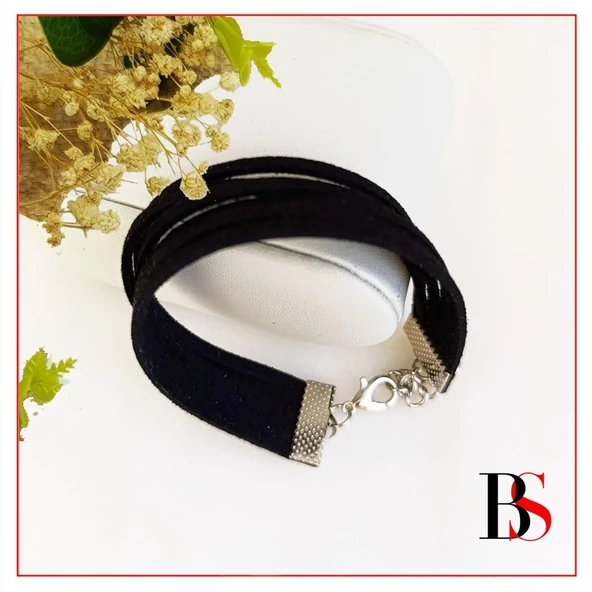 Siyah Süet Çok Sıralı Kadın Bileklik