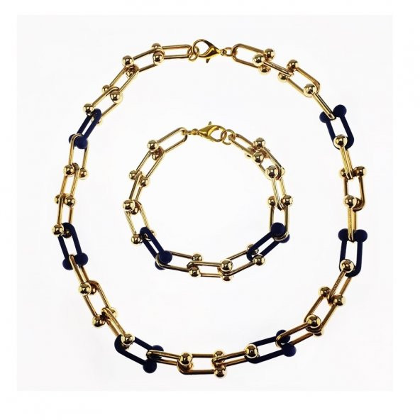 Altın Kaplama Sarı & Mavi Zincir Kadın Kolye & Bileklik İkili Set