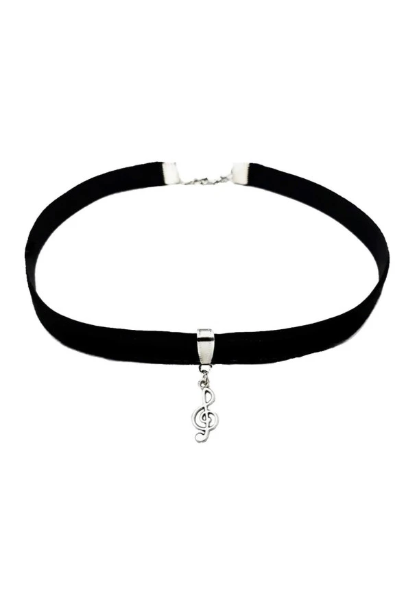 Siyah Kadife Kadın Sol Anahtarı Choker Kolye