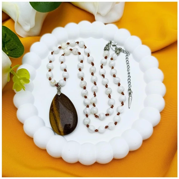 Sedef Doğal Taş Makrome Örme - Kaplangözü Kolye Ucu Kadın Kolye
