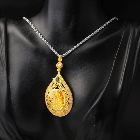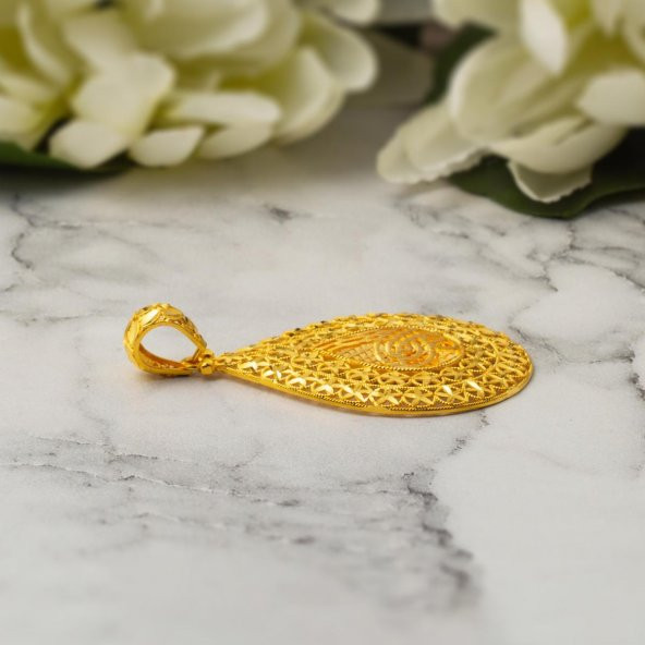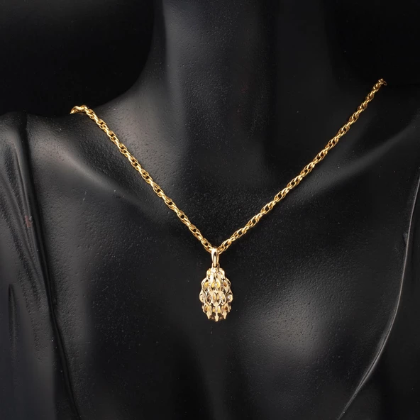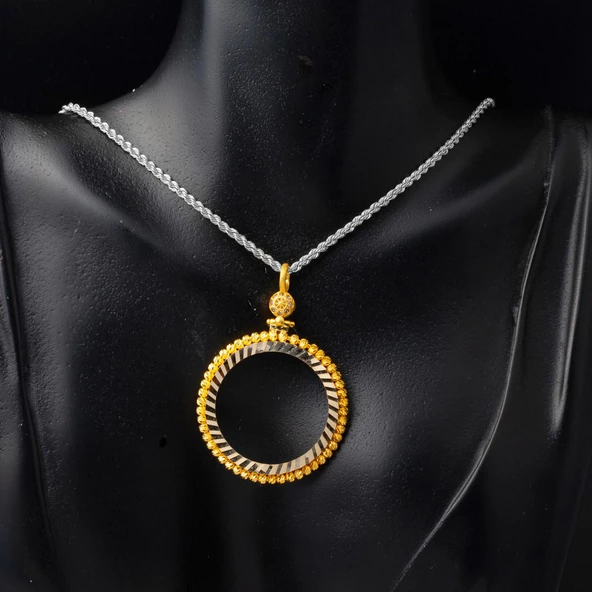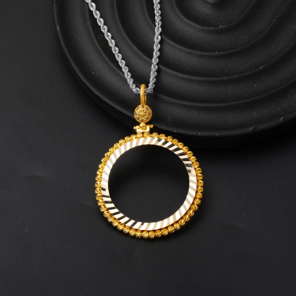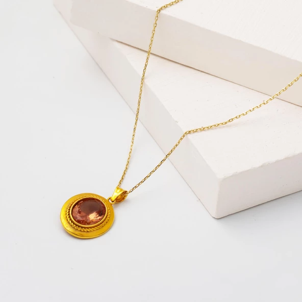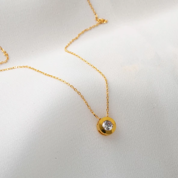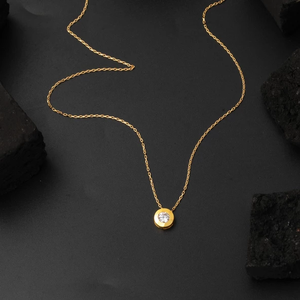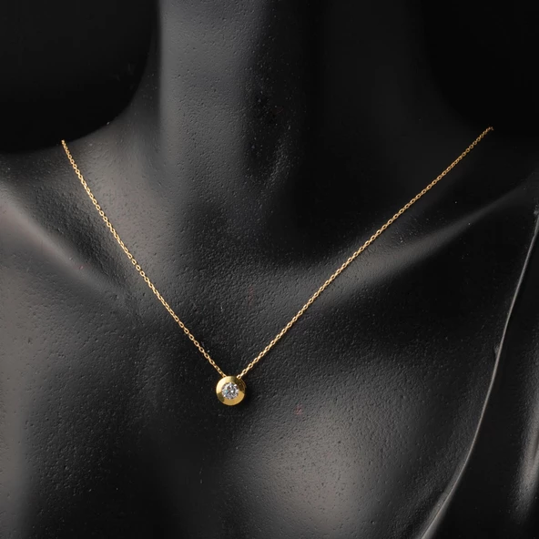 Tek Taşlı Yuvarlak Tasarım 22 Ayar Altın Kolye