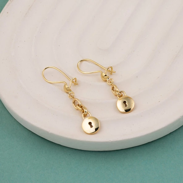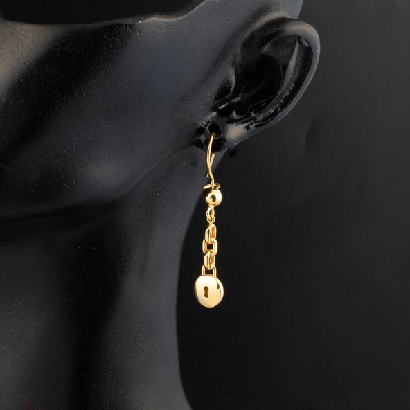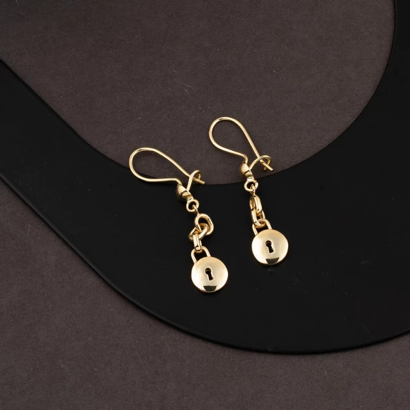 14 Ayar Yuvarlak Kilit Sallantılı Altın Küpe
