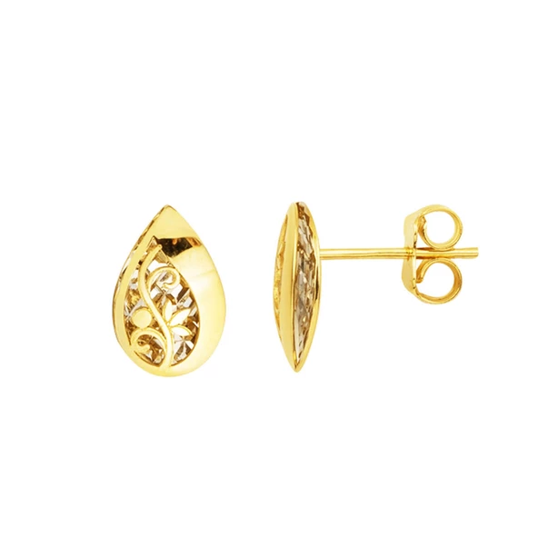 Işıltılı Damla 14 Ayar Pimli Altın Küpe