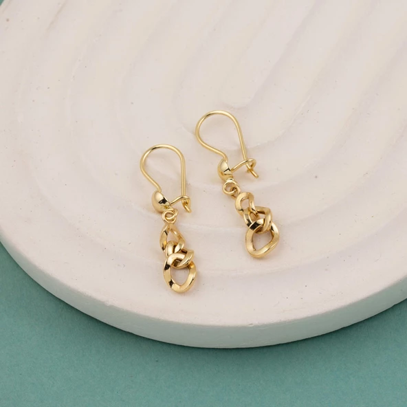 14 Ayar Gurmet Zincir Sallantılı Altın Küpe