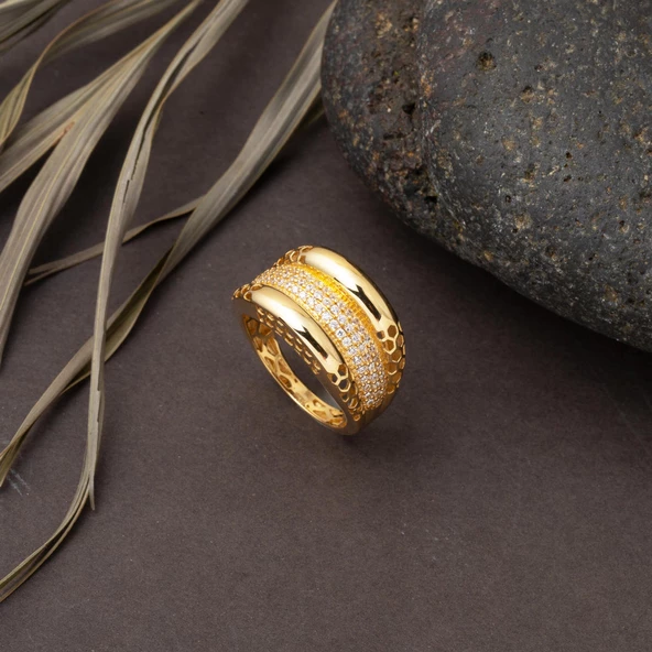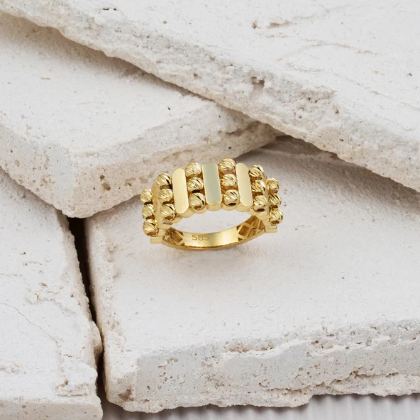 Bombeli Tasarım 14 Ayar Spor Altın Yüzük