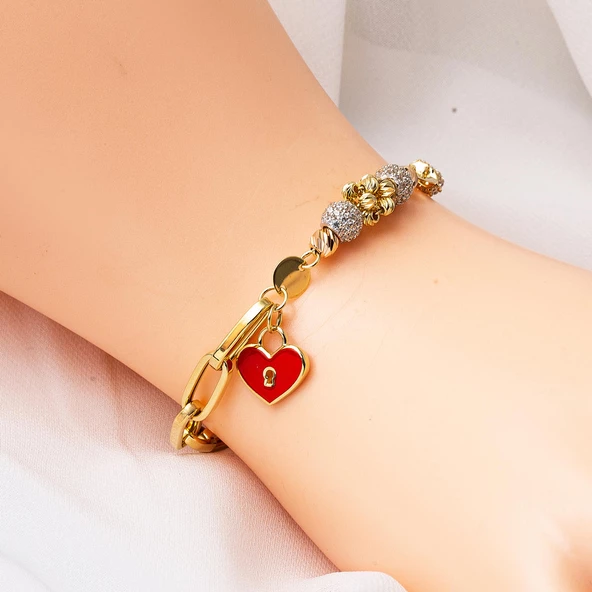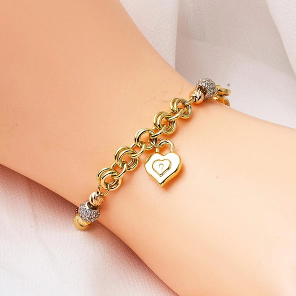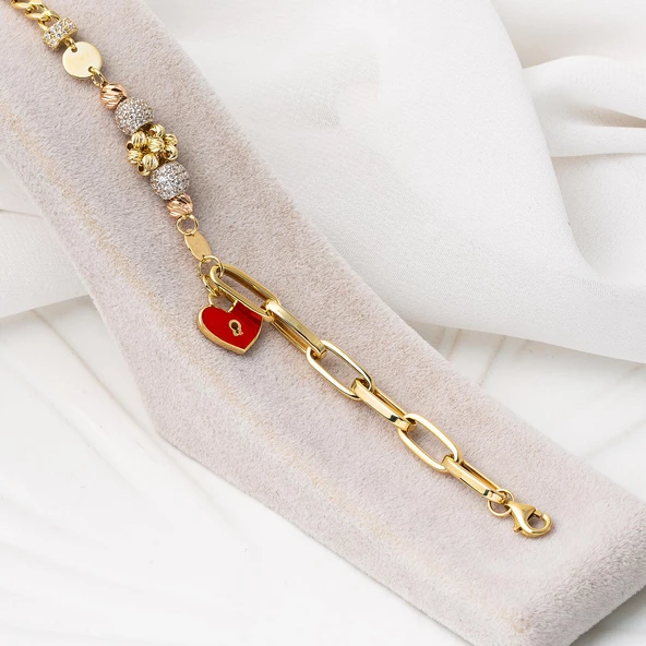 Kalbimin Kilidi 14 Ayar Altın Bileklik