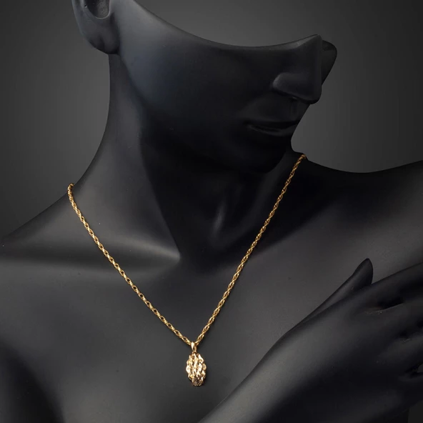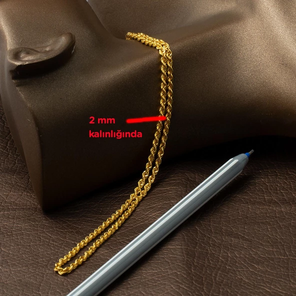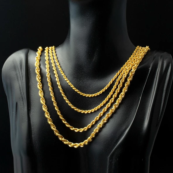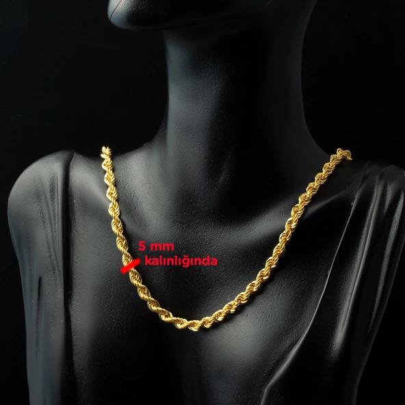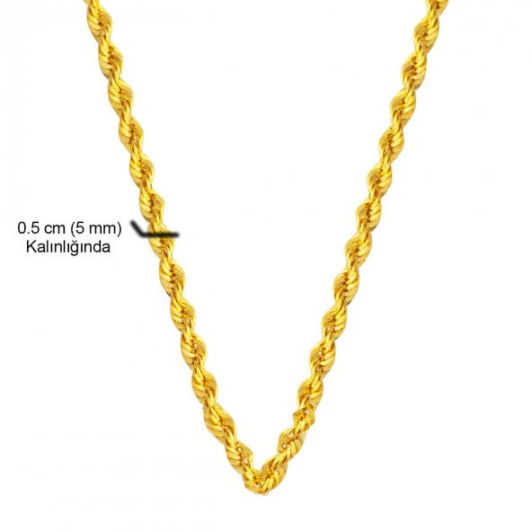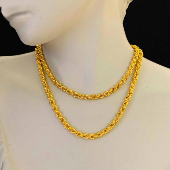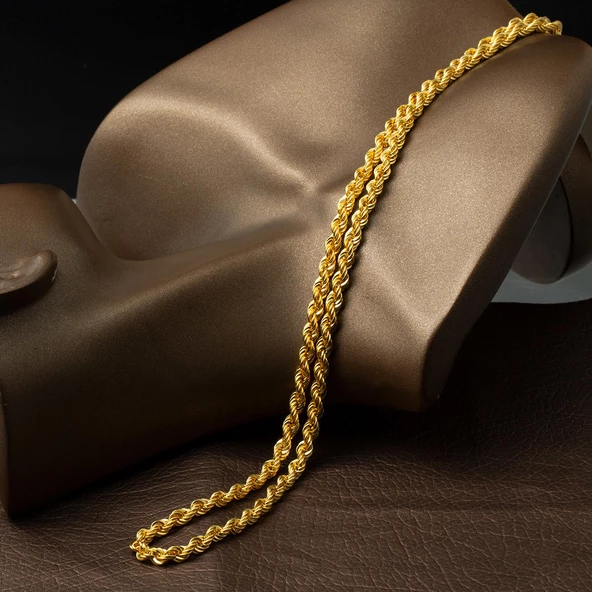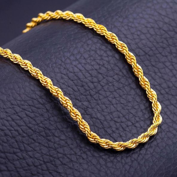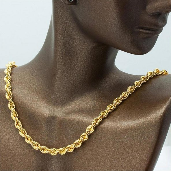 55 Cm. Kalın Burmalı Halat Altın Zincir