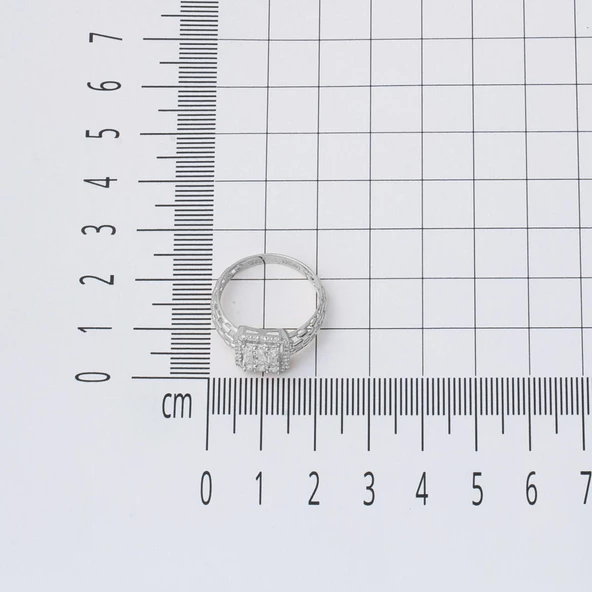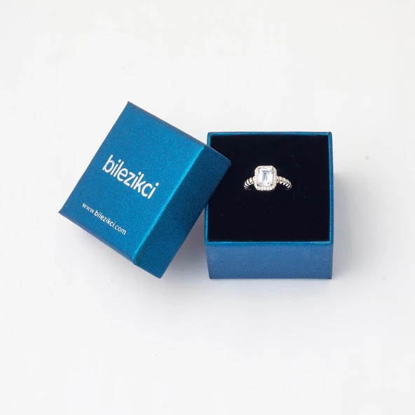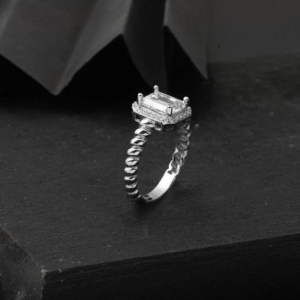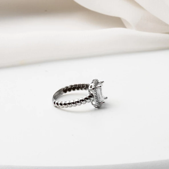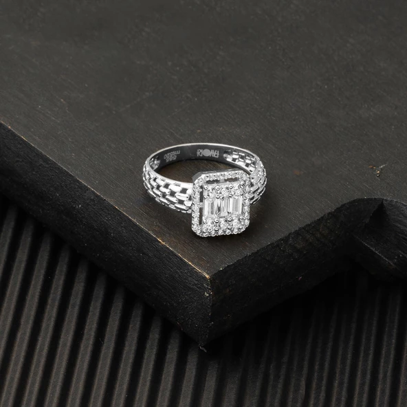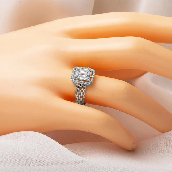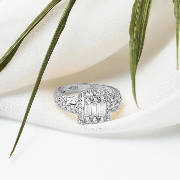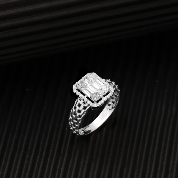 14 Ayar Beyaz Altın Baget Taşlı Yüzük