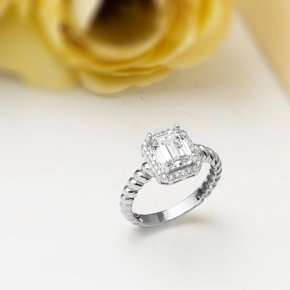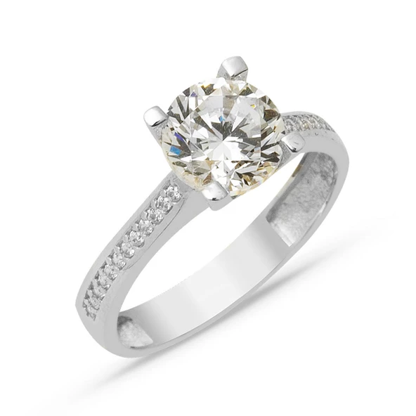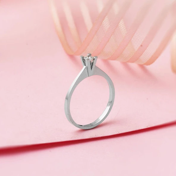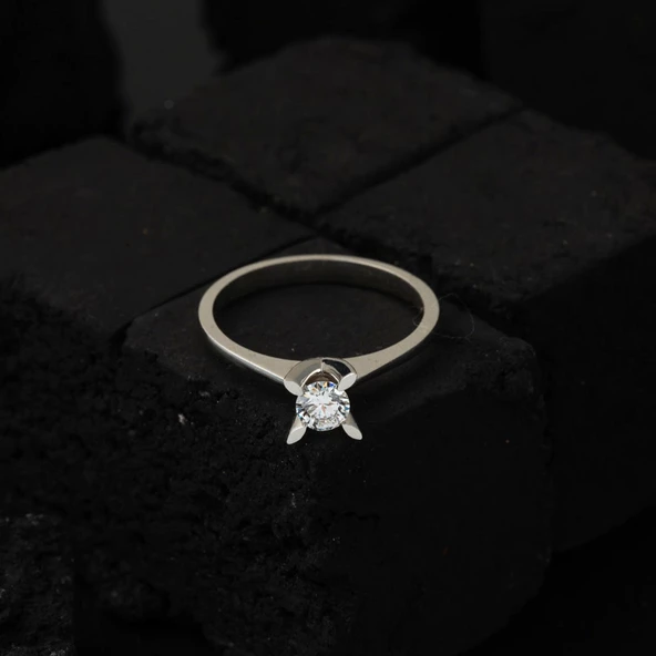 Beyaz Altın Tek Taş 14 Ayar Yüzük