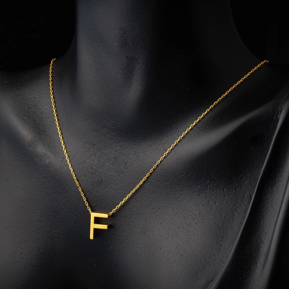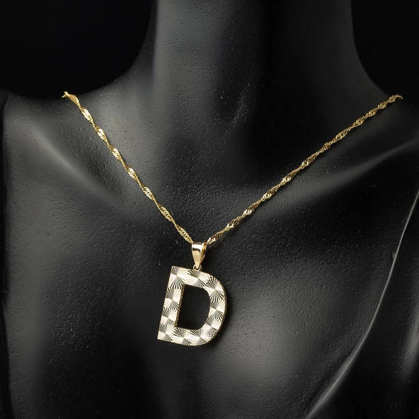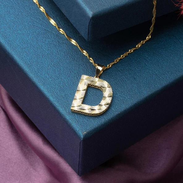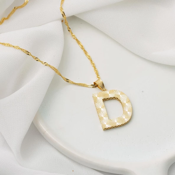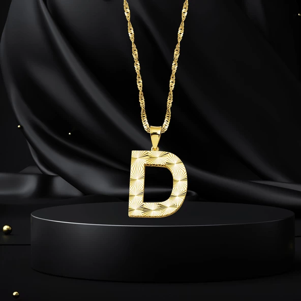 D Harfi 3 Boyutlu Altın Kolye